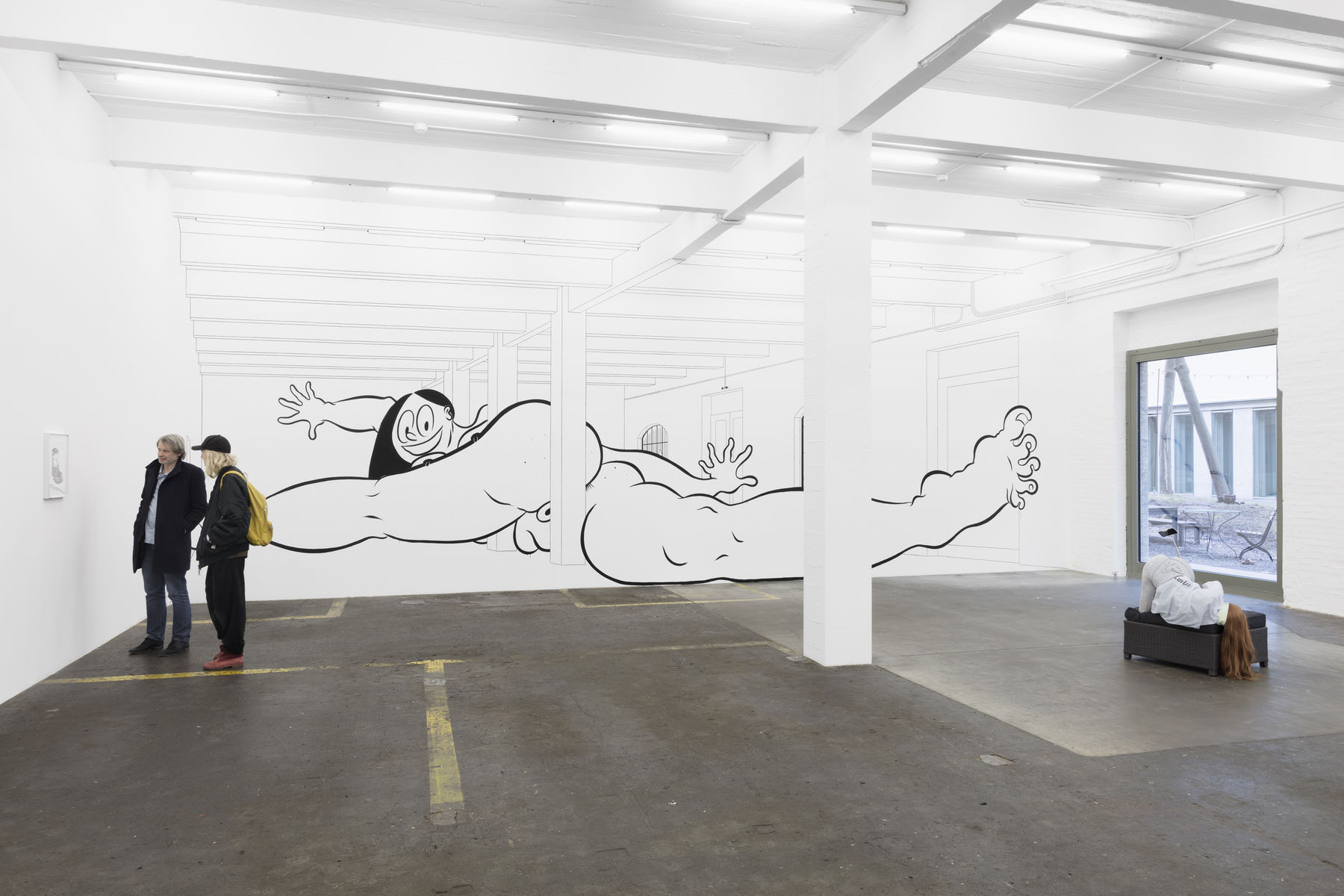 The group exhibition «No Fear of Fainting in a Gym» is showing works by international female artists who take as their central theme the body, parts of it or even its absence and thereby stimulate a critical encounter with its present-day perception and the use of it. In the works on show there is a mixture of self portrayal and phantasms, grotesque humour and the uncanny, real limits of the physical and the virtual possibilities of new technologies. The exhibition is characterised by the use of the widest range of media such as a mural (Ebecho Muslimova, *1984, Russia), inkjet print on PVC (Louisa Gagliardi, *1989, Switzerland), sculpture (Anna Uddenberg, *1982, Sweden) and video (Tabita Rezaire, *1989, France). The artists manage both to explore technical limits and to open a space between the poles of the grotesque and figuration. «No Fear of Fainting in a Gym» consciously promotes the female view on the topic and makes an important contribution to current discussions.